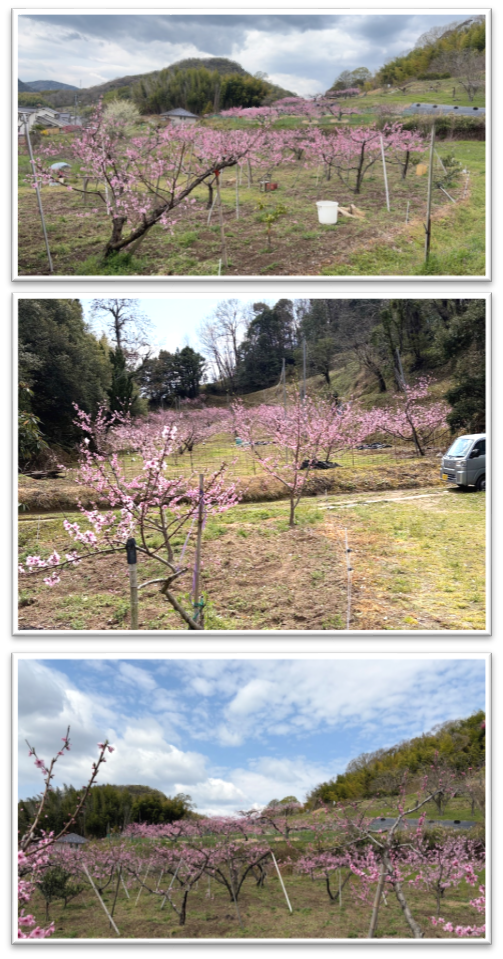 桃の花が満開です! お知らせ 2026.04.02 夫婦で挑戦 ~日々精進~その3~ 本日の農園をご覧ください 「今年もこの季節がやってきました。満開の花に、身が引き締まる思いです。」 厳しい冬を越え、今年も力強く花が咲き誇りました。 収穫までの長い道のりがいよいよスタートします。 「最高の一玉」を目指して、一切の妥協なしで頑張ります! 今年の桃も、ぜひ楽しみにしていてください。
